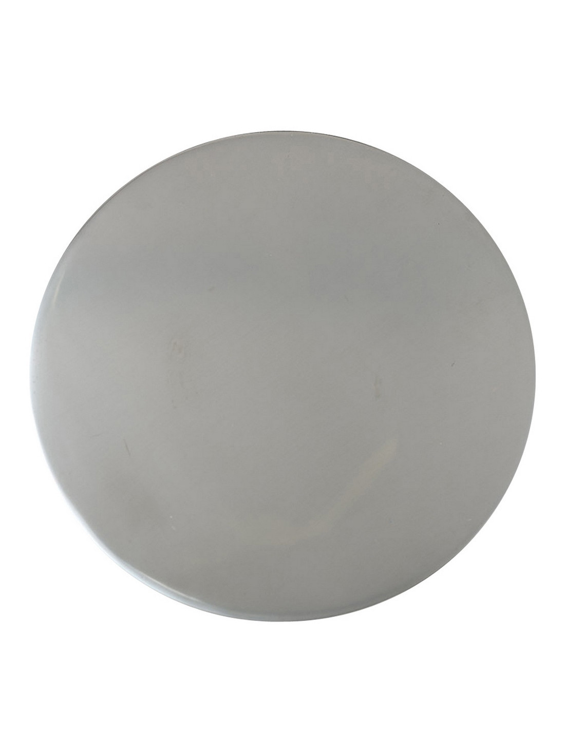 The plate is made of stainless steel and is silver-colored. The plate is matte and its diameter is 12 cm. The thickness of the plate is 0.1 cm.