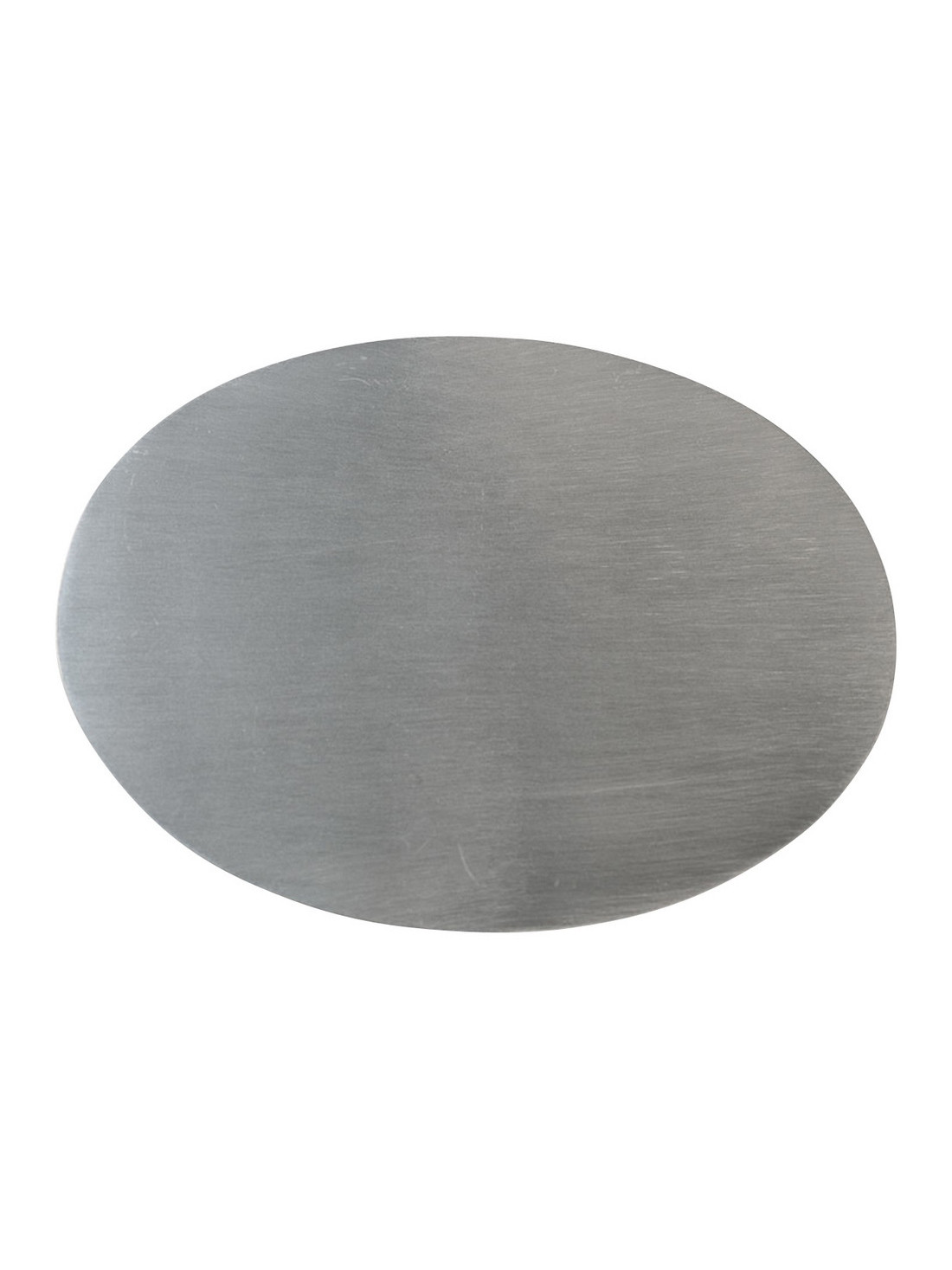 The plate is made of stainless steel and is silver-colored. The plate is matte. Its length is 17 cm and its width is 12 cm. The thickness of the plate is 0.1 cm.