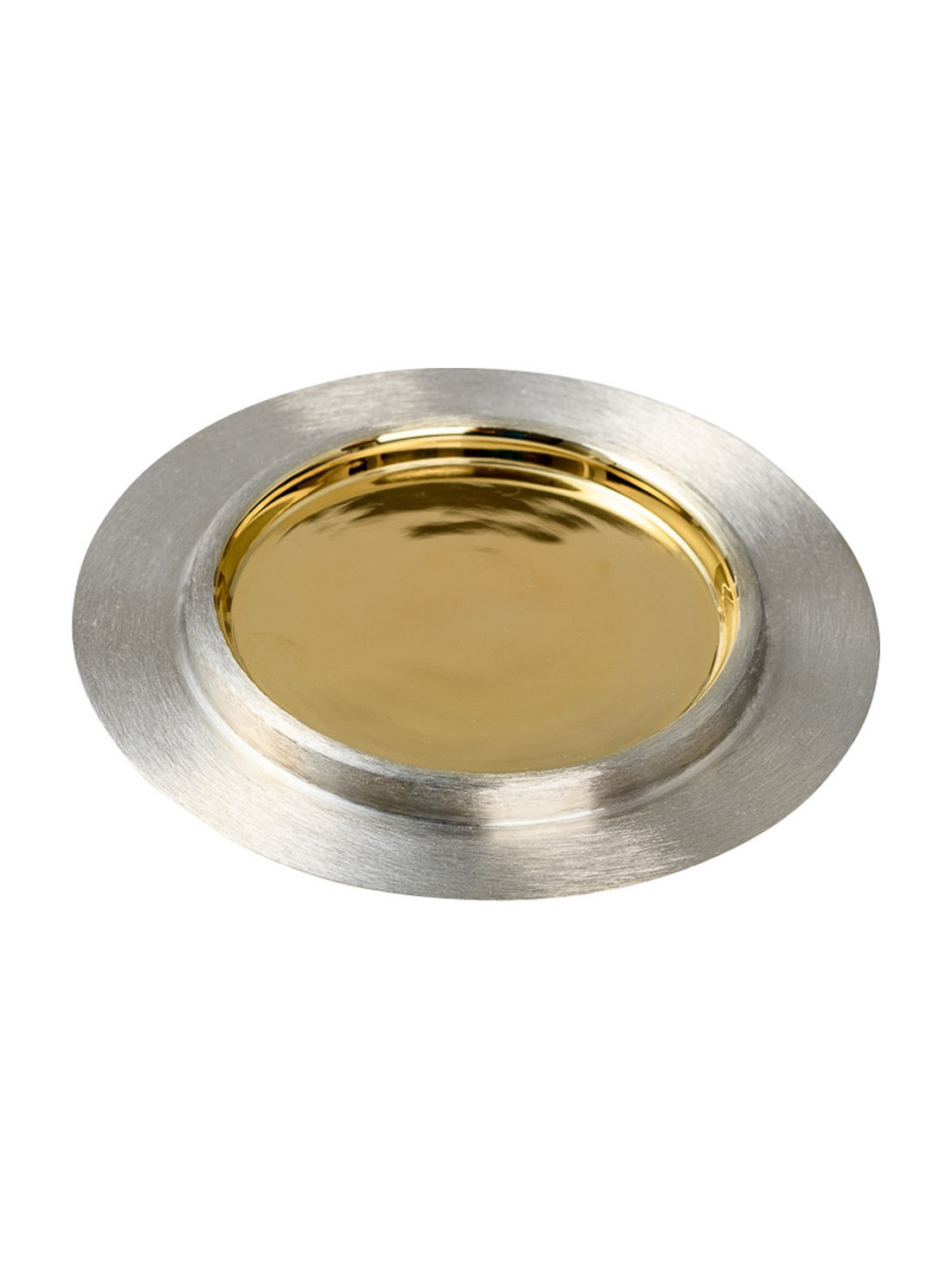 A paten is a liturgical vessel used in celebrating the Eucharist. It belongs to the Vasa Sacra.