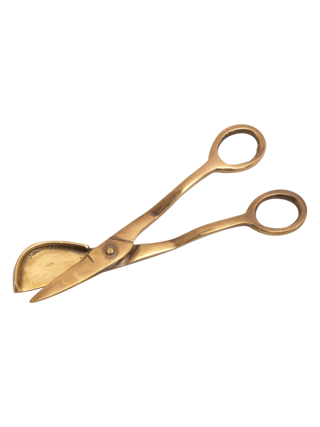 The wick scissors are made of brass, gold-colored and look antique. The length is 15 cm.