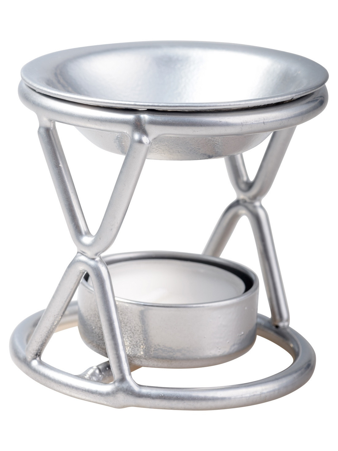 The incense burner is made of iron and has a silver color. The height of the incense burner is 7 cm. The foot has a diameter of 7.3 cm.