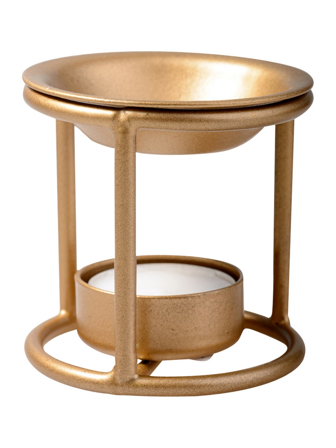 The incense burner is made of iron and has a gold color. The height of the incense burner is 7 cm. The foot has a diameter of 7.3 cm.